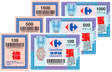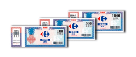 ※Reminder: It takes 3 days to deal with the gift vouchers over NT$ 100,000 with discount. Please place the order in advance. Please call the special line of each Carrefour branch. Only cash, remittance, and sight check are acceptable. (Personal checks are not acceptable. Gift vouchers are delivered only after the check is cashed.)