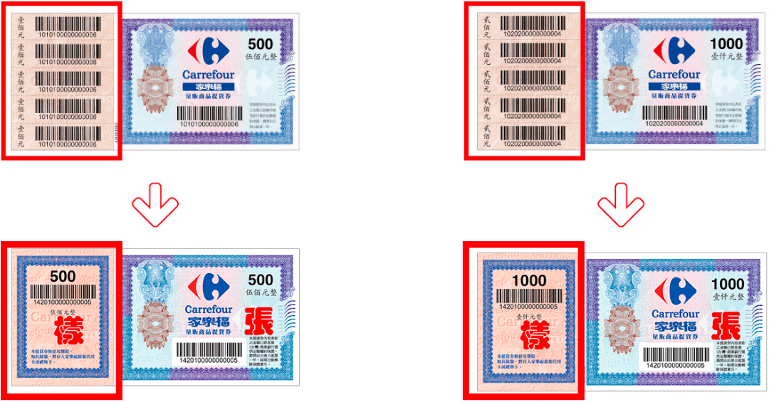 ※Note: The version of Carrefour gift voucher without sub-vouchers has been issued since September 1, 2017.