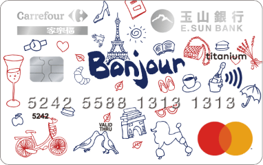 持聯名卡於店內消費:一元現換2點家樂福紅利點數,店外消費:一元現換1點家樂福紅利點數,輕鬆累積~